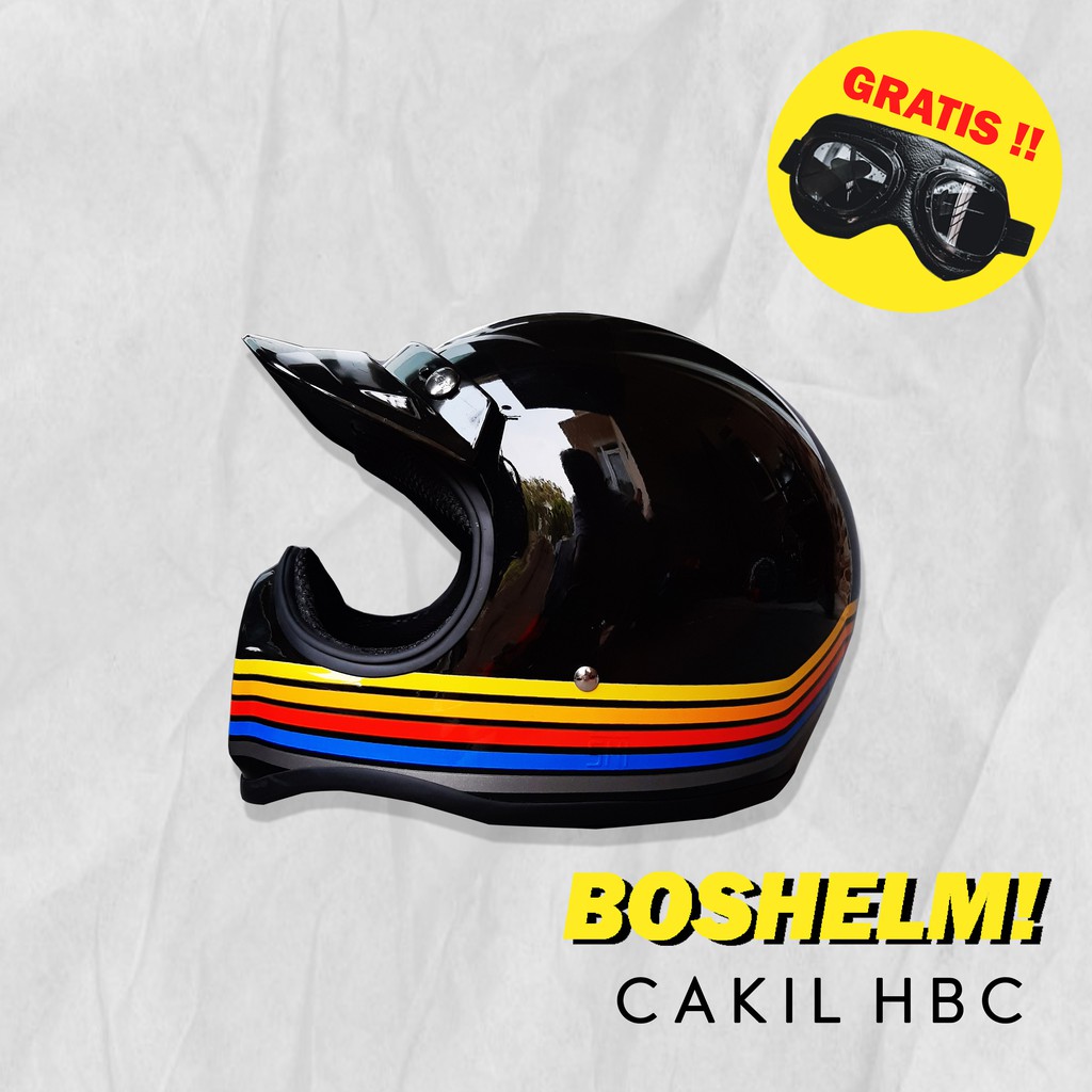 Alasan kenapa harus beli BOSHELM Helm Cakil HBC STRIPE BLACK Helm Retro Full Face SNI sekarang