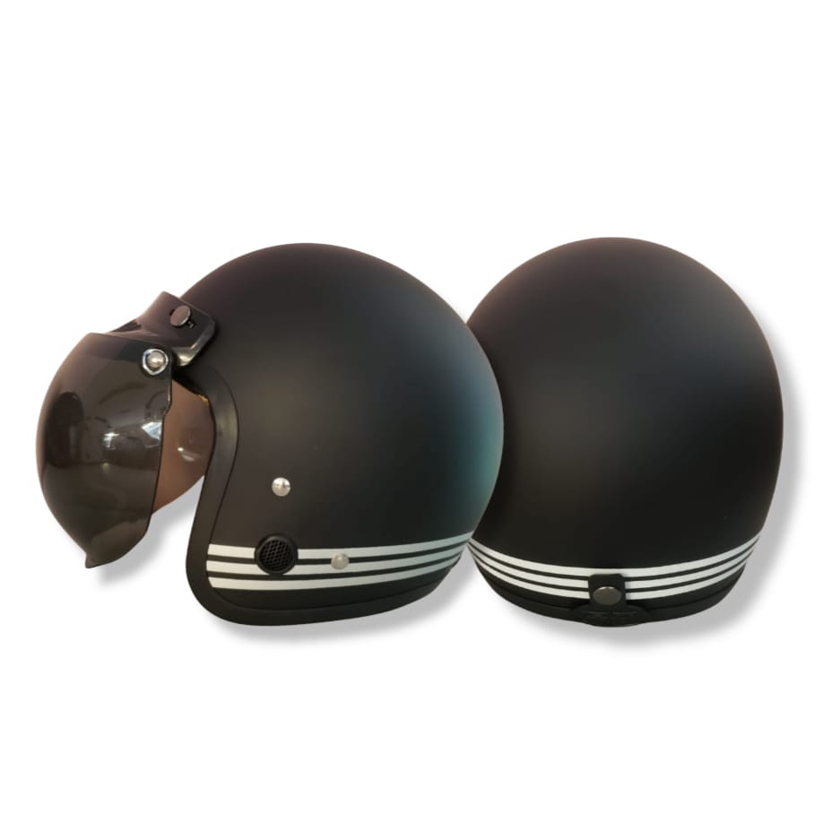 Helm Bogo / Helm Retro / IOZ ANT Line Black Doff (Free Kaca Helm)