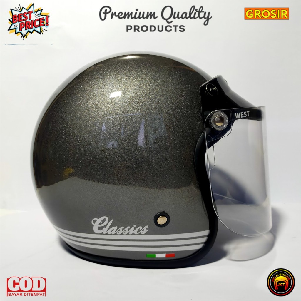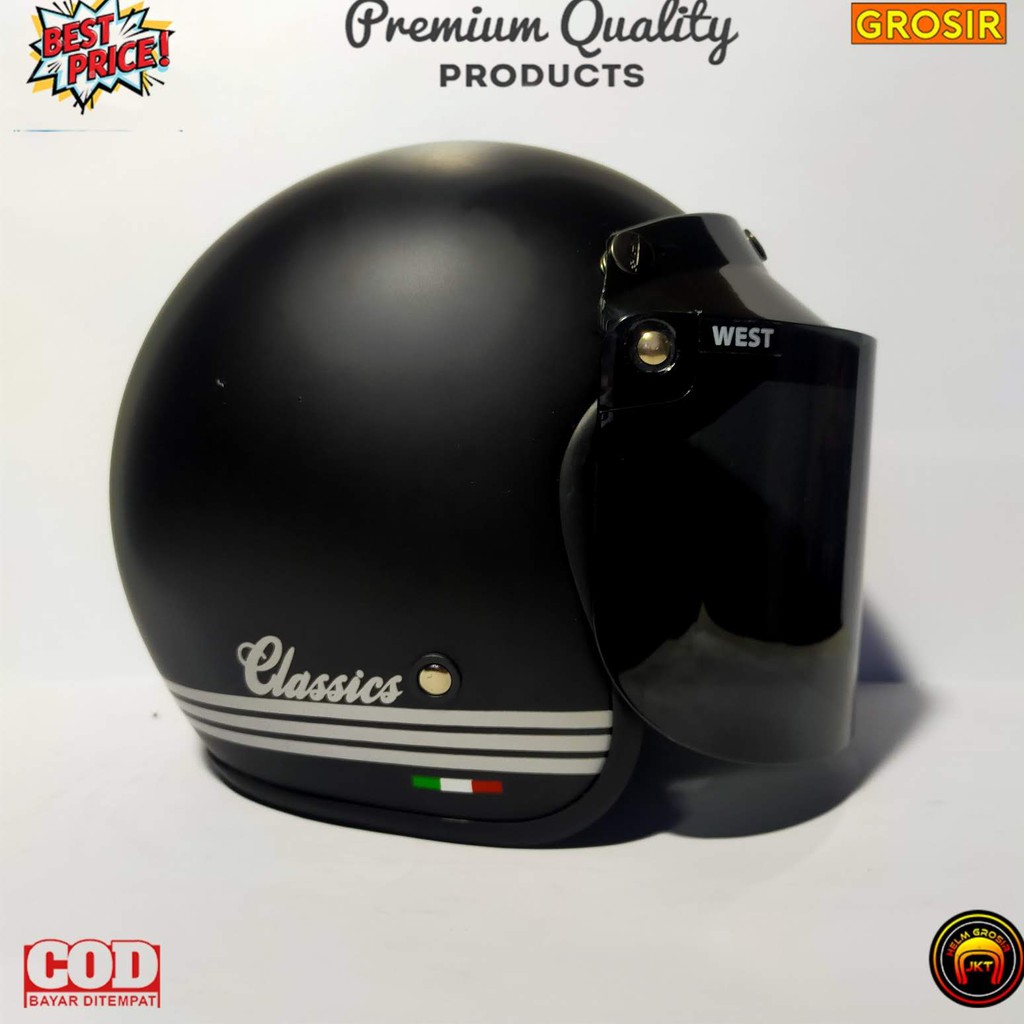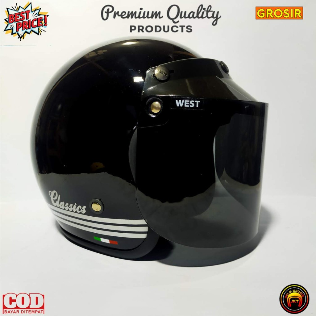 Harga HELM BOGO CLASSIC KACA DATAR HITAM BENING UKURAN BESAR (XL) HANYA UNTUK UKURAN KEPALA BESAR DAN BADAN BESAR COD