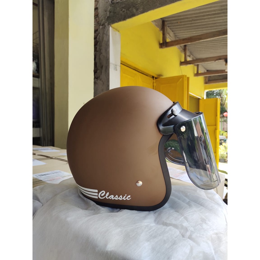 Harga HELM BOGO DEWASA CLASIC SUDAH + KACA DATAR free packing