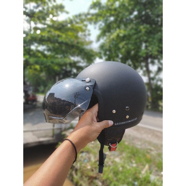 Helm Bogo / Helm Retro / Helm ANT Line black doff + Kaca Datar
