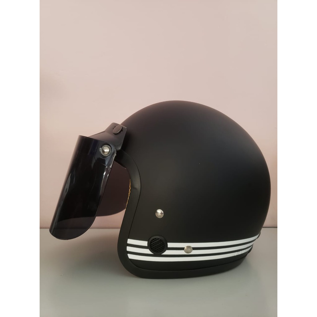 Alasan kenapa harus beli Helm Bogo / Helm Retro / Helm ANT Line black doff + Kaca Datar sekarang