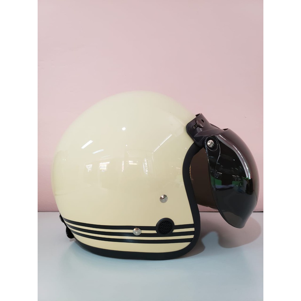 Helm Bogo / Helm Retro IOZ Stripe Cream (Free Kaca Helm)
