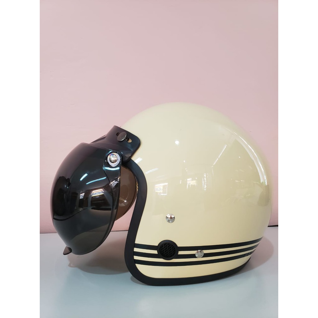 Alasan kenapa harus beli Helm Bogo / Helm Retro IOZ Stripe Cream (Free Kaca Helm) sekarang