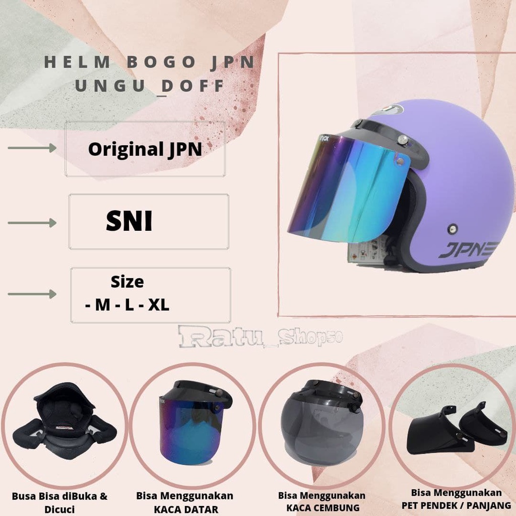 Kelebihan - Kelebihan membeli Helm Bogo JPN Retro Ungu Doff Polos Kaca Datar cembung di Toko ini