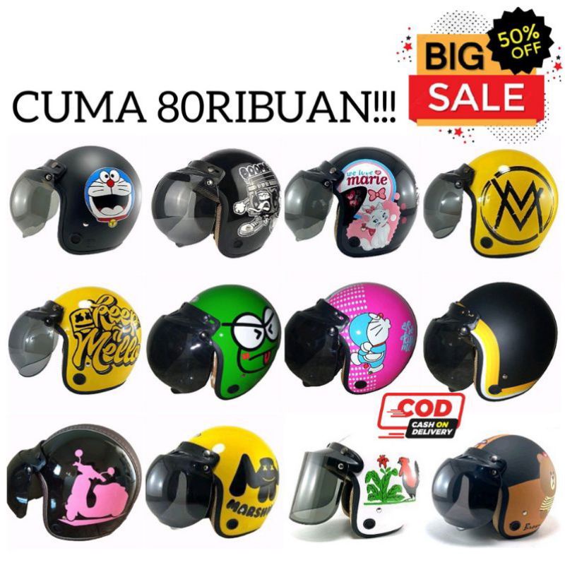 - Produk ini tidak sedang Flash Sale, tidak semua Seller suka Flash Sale, saya rasa ini bukan kekurangan, Jika Anda anggap Harga Rp. 77.500,00 itu murah untuk Helm Bogo Retro Remaja Dewasa Helem KPop SNI Full Leher [BISA COD] Motif BTS ya ambil saja