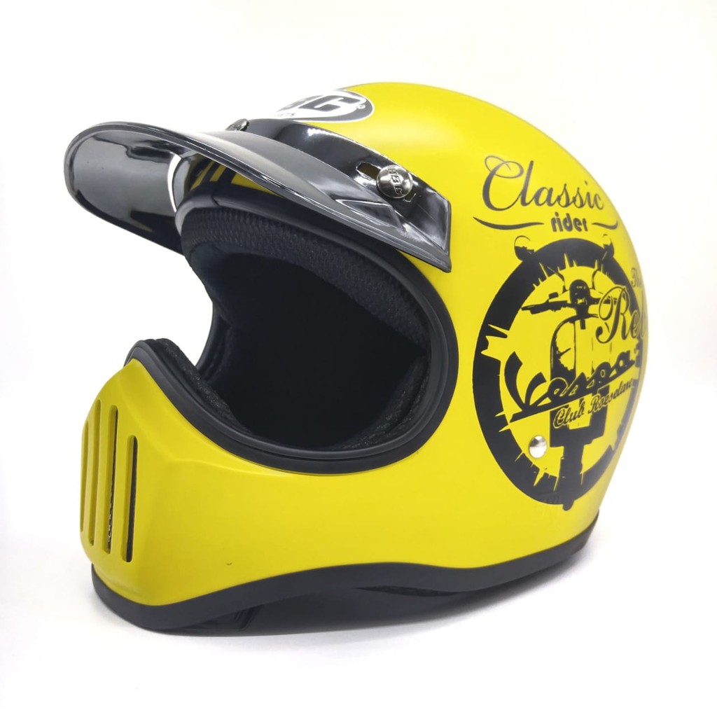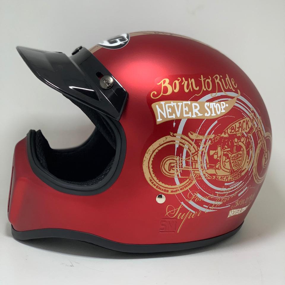 HLM Helm Bogo Motif Dewasa Retro Helem Classic Kaca Datar Cembung Full Leher Pria wanita SNI Murah