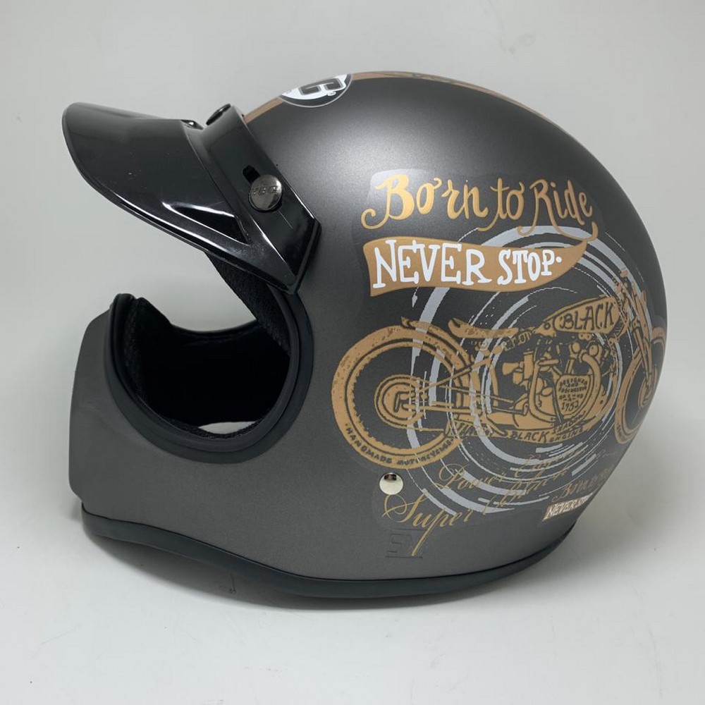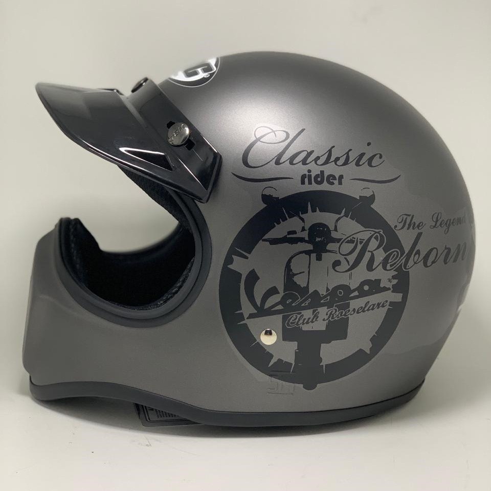 Helm Bogo / Helm Retro / Helm Full Kulit GTR Gunmet Black + kaca
