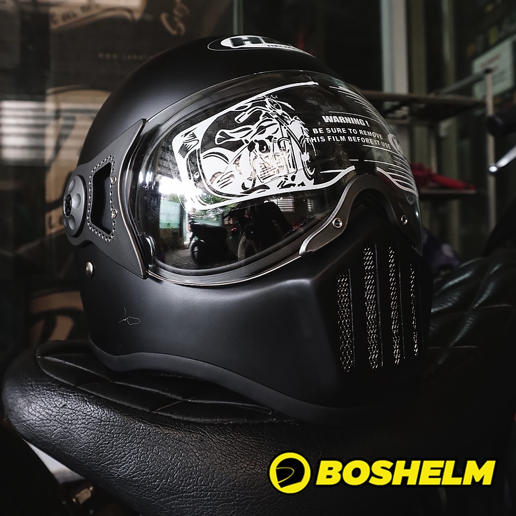 BOSHELM Helm Cakil HBC HITAM DOFF Inner Visor Helm Retro Full Face SNI