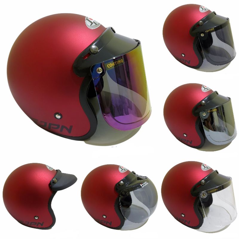 Helm bogo jpn merah maroon dof kaca datar flat visor