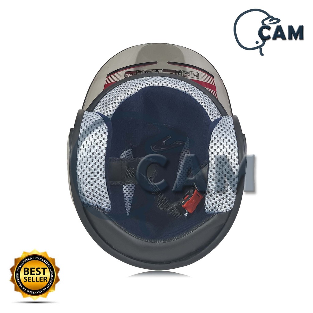 Helm Bogo Dewasa Garis Polos Retro Motor SNI Kaca Cembung Datar SNI