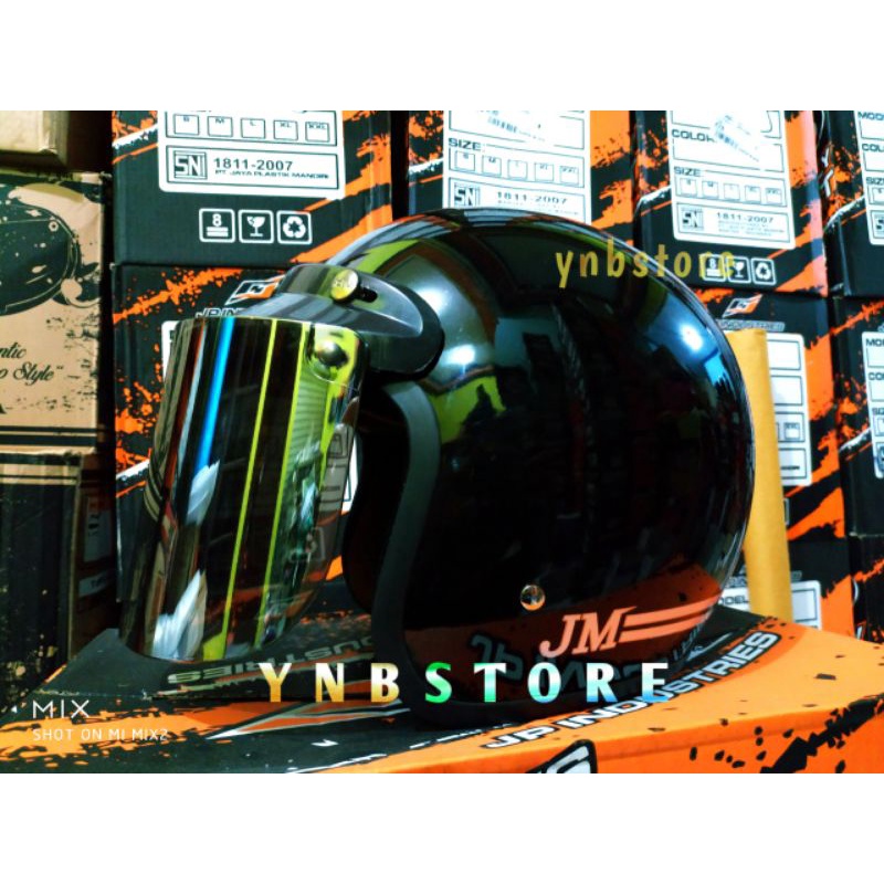 Helm Bogo JPN Retro Klasik Jap Style Motif Brotherhood Motif Silver Kaca Bogo Original Hitam Doff