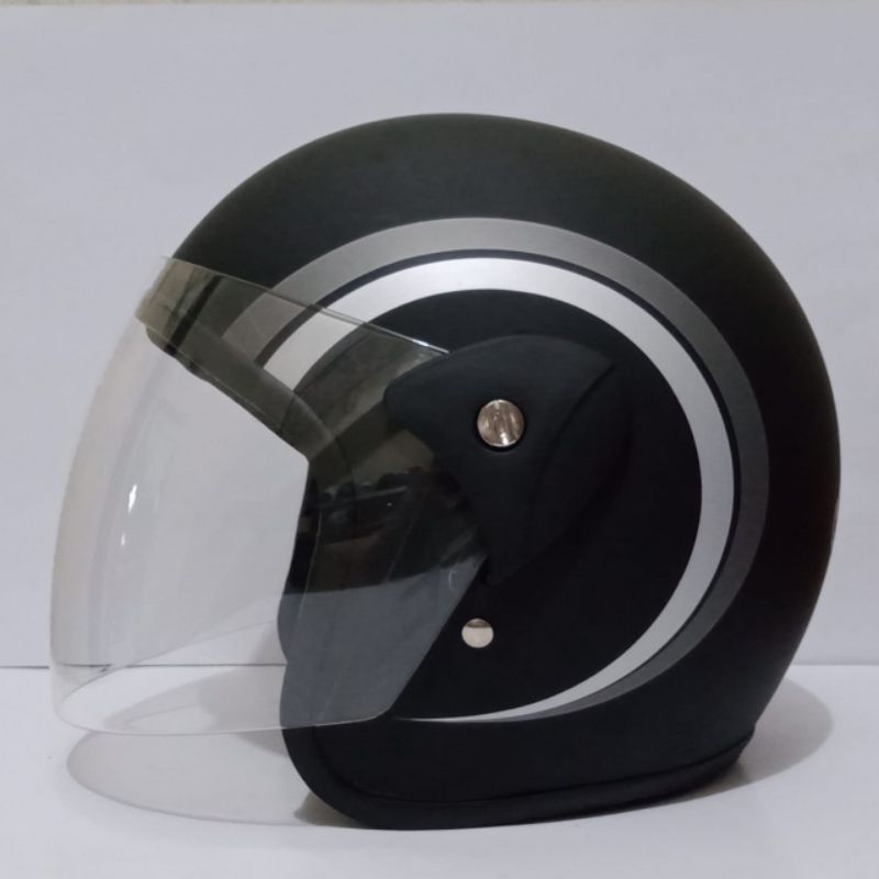 HELM BOGO RETRO CLASSIC SNI GARIS TIGA KACA DATAR KACA CEMBUNG