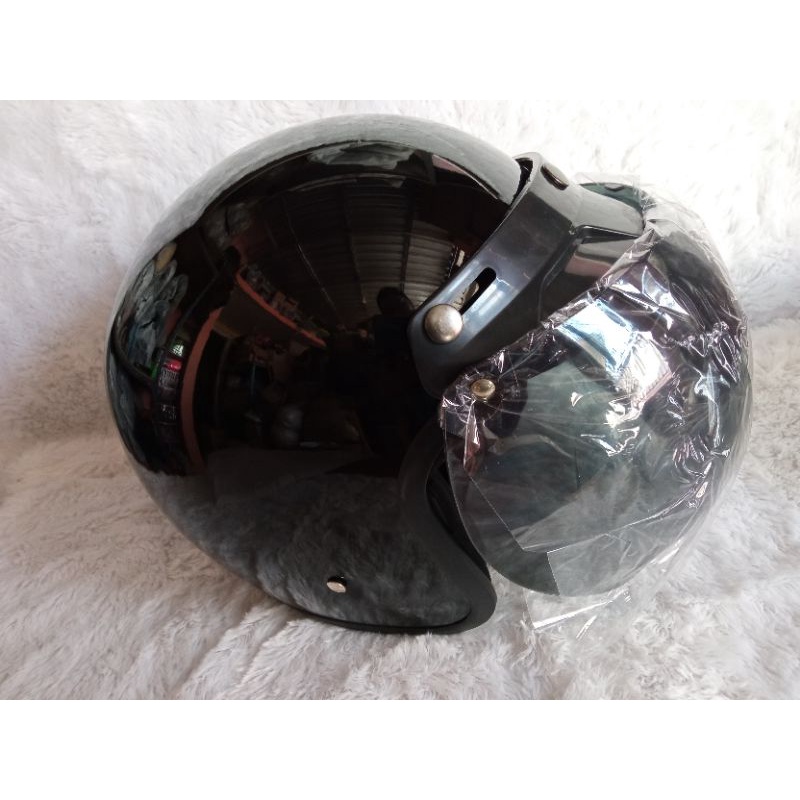 HELM BOGO JPN RETRO HITAM DOP KACA DATAR & CEMBUNG