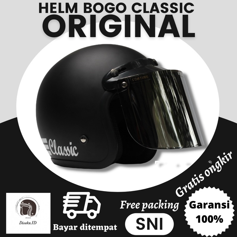 Produk (BISA BAYAR DI TEMPAT)Helm bogo retro pria dan wanita hijab classic original sni trendy polos hitam doff kaca datar ini harganya adalah Rp. 45.000,00 dan saat ini sedang Diskon 39%, Produk ini sendiri saat saya tulis Artikel ini sudah dilihat sebanyak kali dan sudah disukai sebanyak 1013 kali.