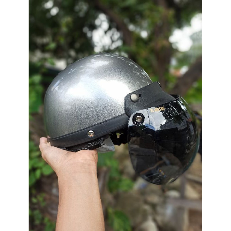 HELM BOGO KACA BENING CEMBUNG DEWASA SNI POLOS REAL PICTURE