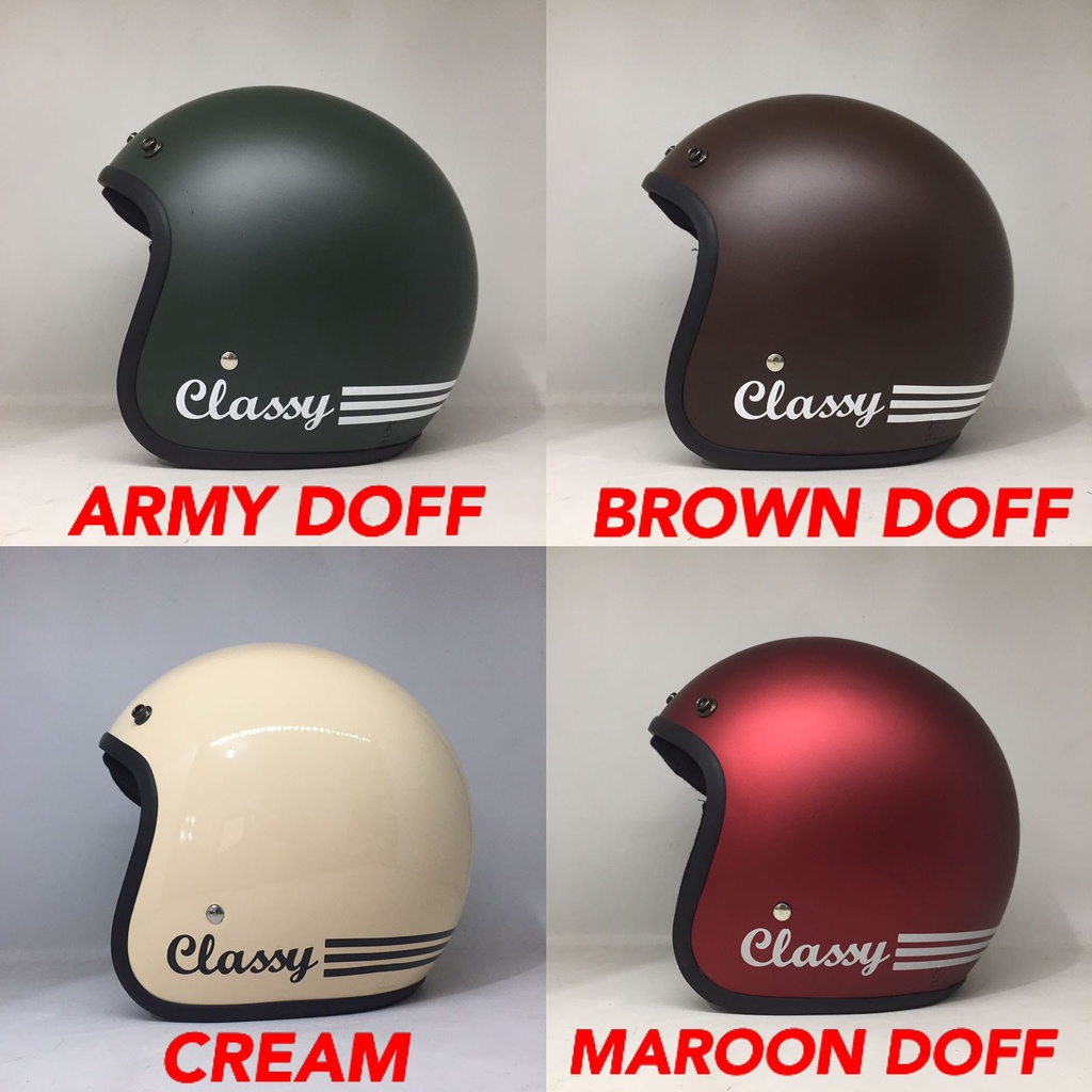 Produk Helm Bogo Retro CLASSIC Wanita Pria Dewasa Keren Cewek Cowok Ukuran M L KACA FLAT DATAR SMOKE Warna Hitam Doff Kuning Putih ini harganya adalah Rp. 68.750,00 dan saat ini sedang Diskon 45%, Produk ini sendiri saat saya tulis Artikel ini sudah dilihat sebanyak kali dan sudah disukai sebanyak 265 kali.