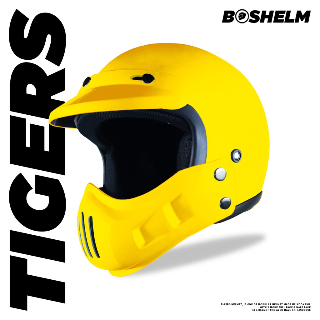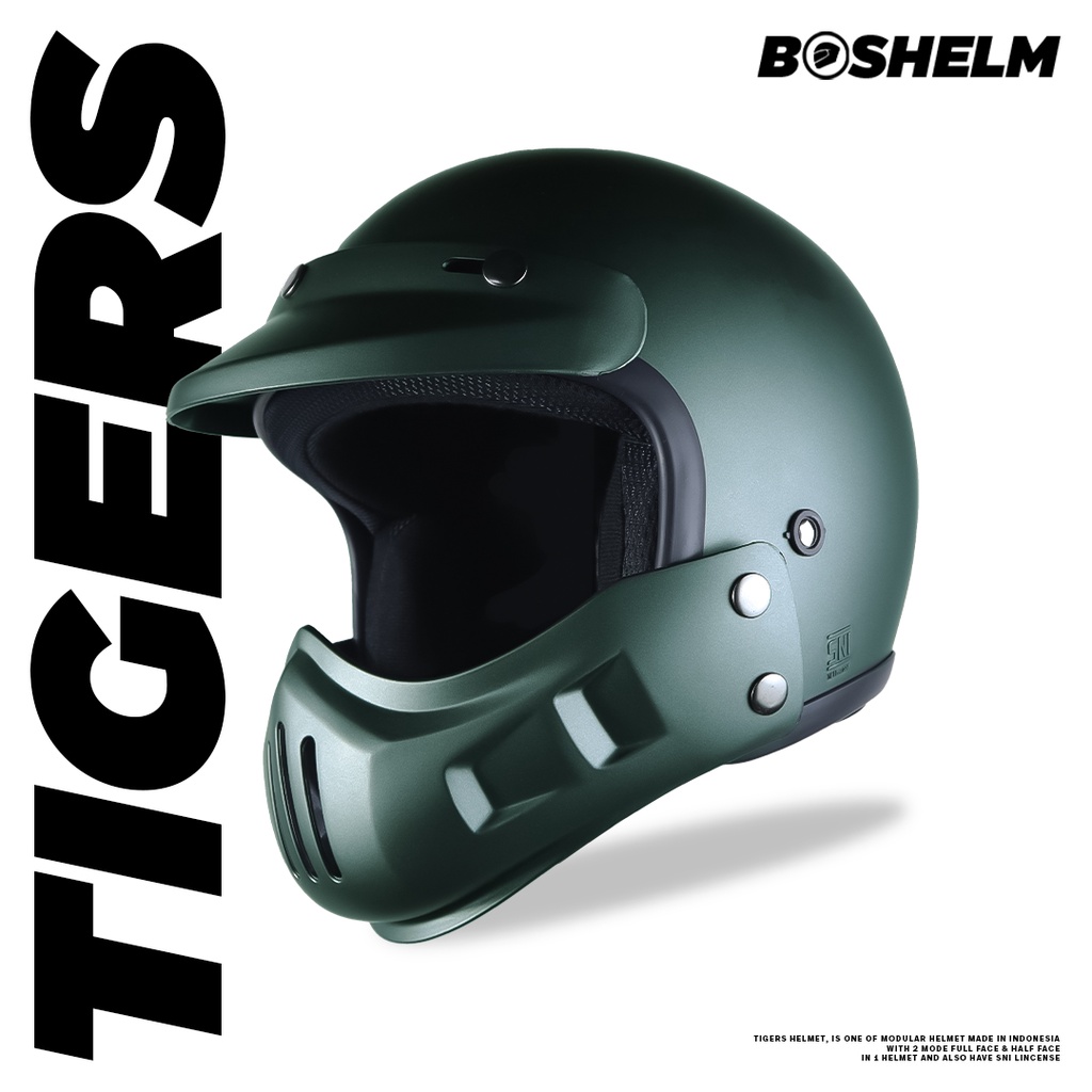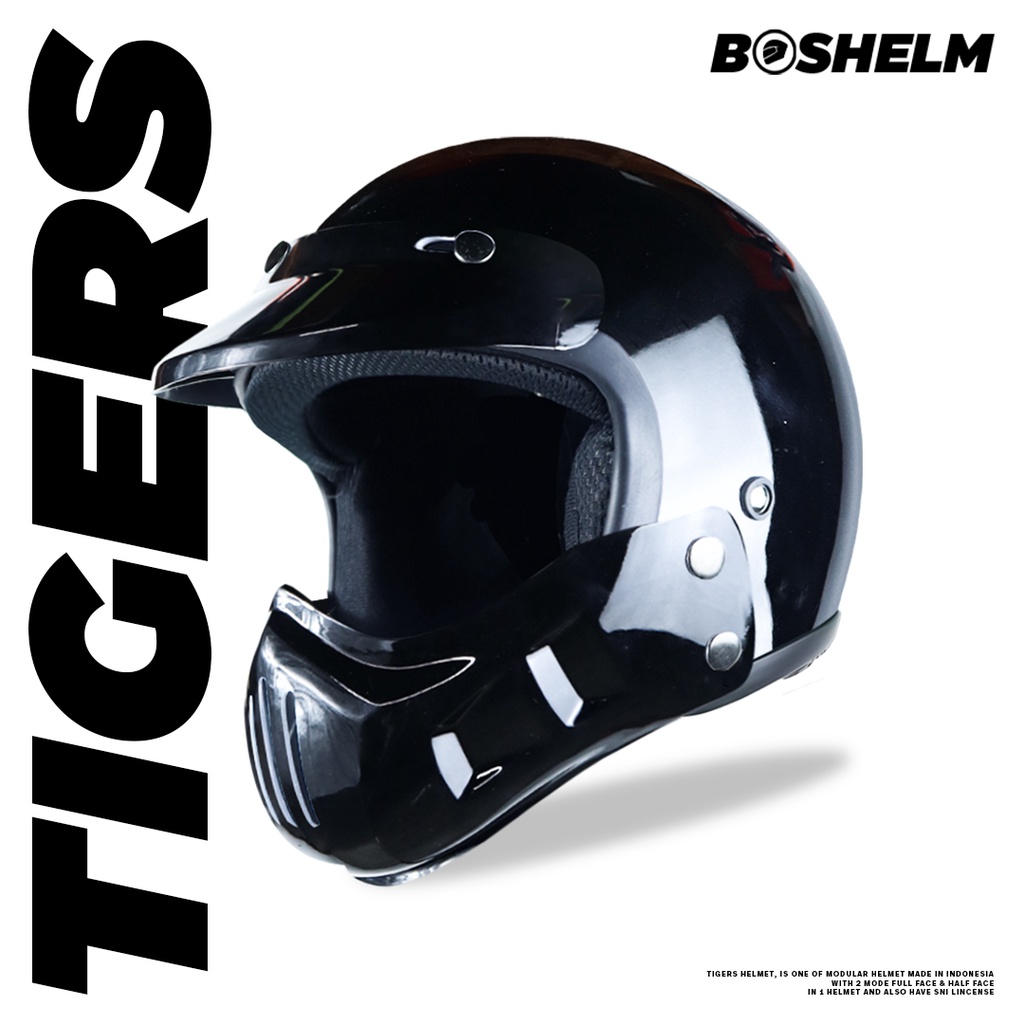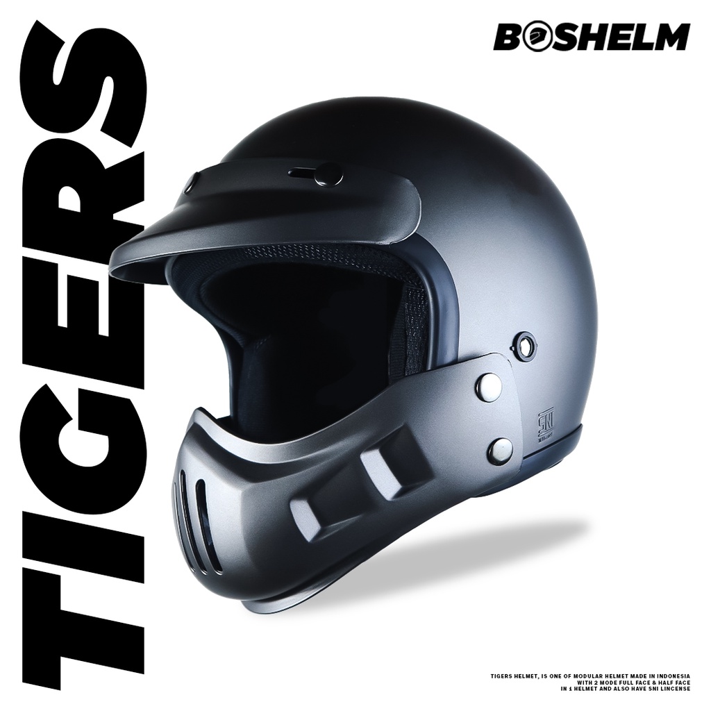 Alasan kenapa harus beli BOSHELM Helm Cakil Modular Tigers HITAM DOFF Helm Full Face SNI sekarang