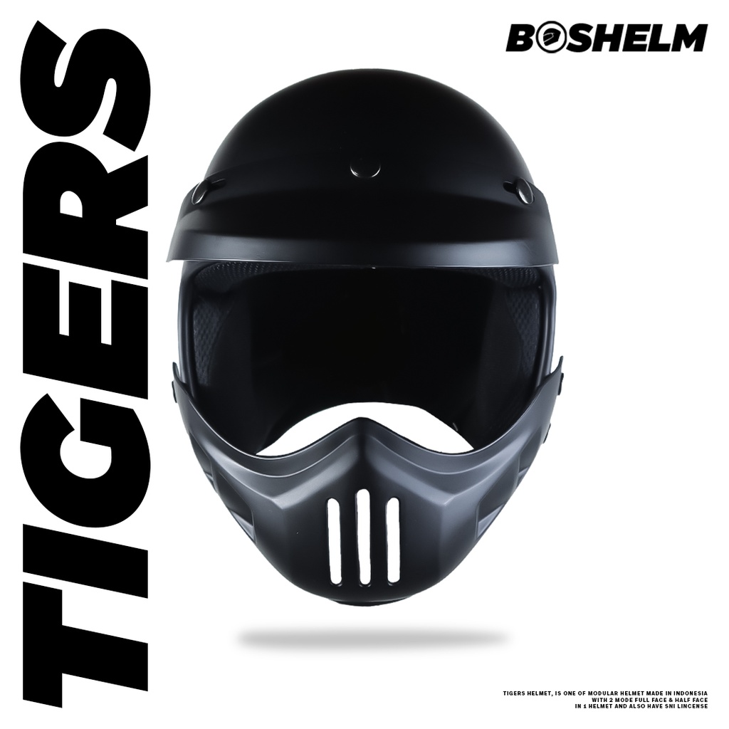 Harga BOSHELM Helm Cakil Modular Tigers HITAM DOFF Helm Full Face SNI