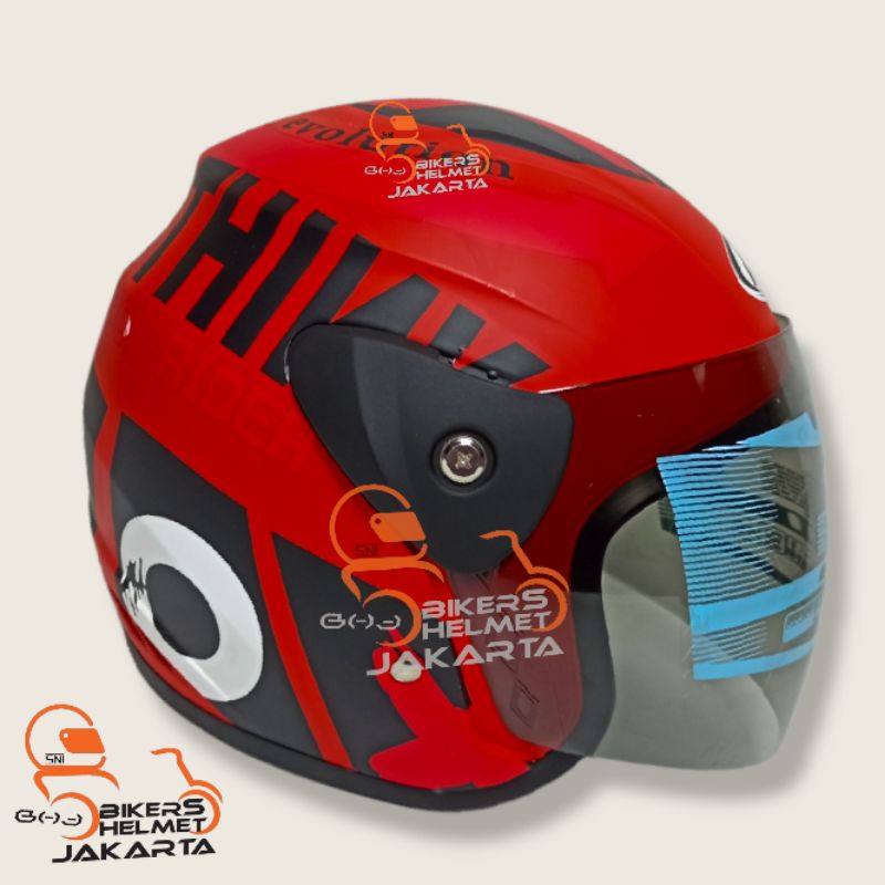HELM OUTSIDE RED DOFF BLACK MODEL GM EVO HALF FACE