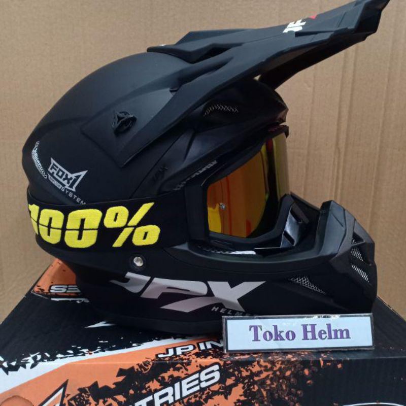 Helm trail cross JPX cross FOX 1 polos hitam doff plus goggle percent
