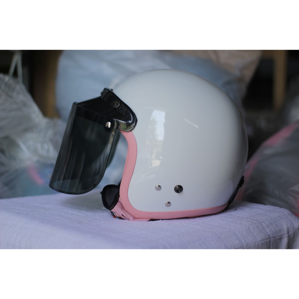 HELM BOGO CAMELIA PASTEL DEWASA KACA DATAR SMOKE
