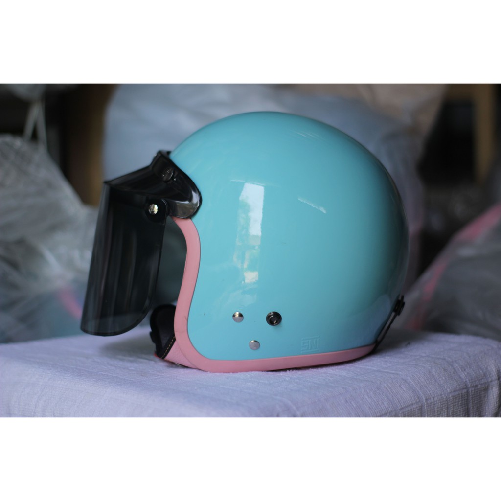 Alasan kenapa harus beli HELM BOGO CAMELIA PASTEL DEWASA KACA DATAR SMOKE sekarang