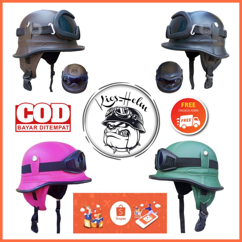 HELM NAZI WARNA/HELM CHIPS/HELM KLASIK/HELM RETRO TERBUKA/HELM/HELM VESPA + KACA MATA