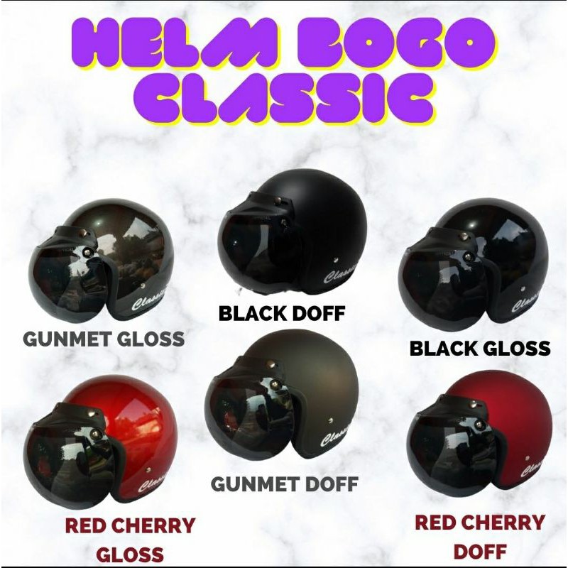 HELM BOGO DEWASA SNI CLASSIC KACA DATAR / CEMBUNG [ BISA COD ]