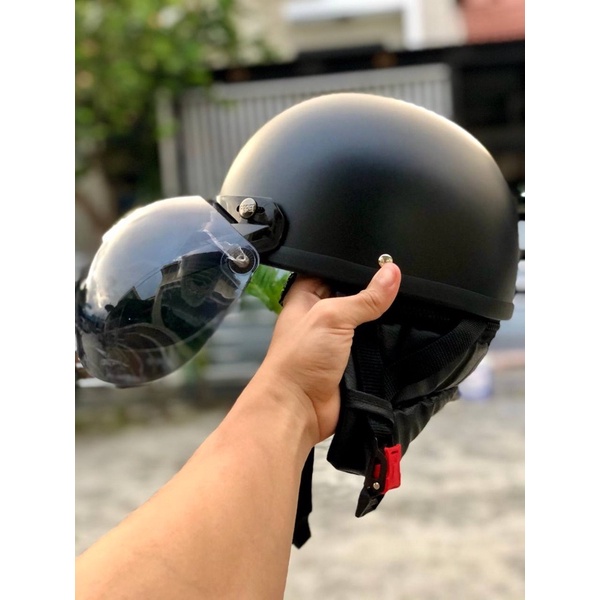 Helm Bogo Jpn Retro Hitam Black Doff Set Google mask topi pendek