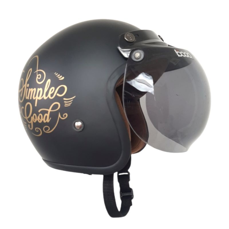 Helm Bogo Retro Marcolino Black Doff SNI Flat Visor