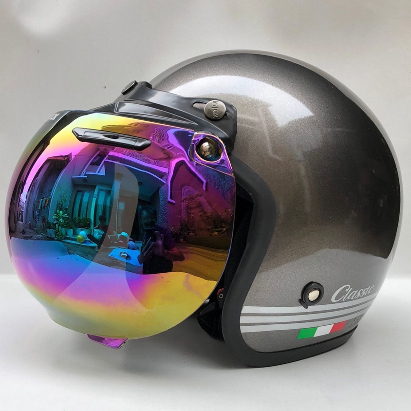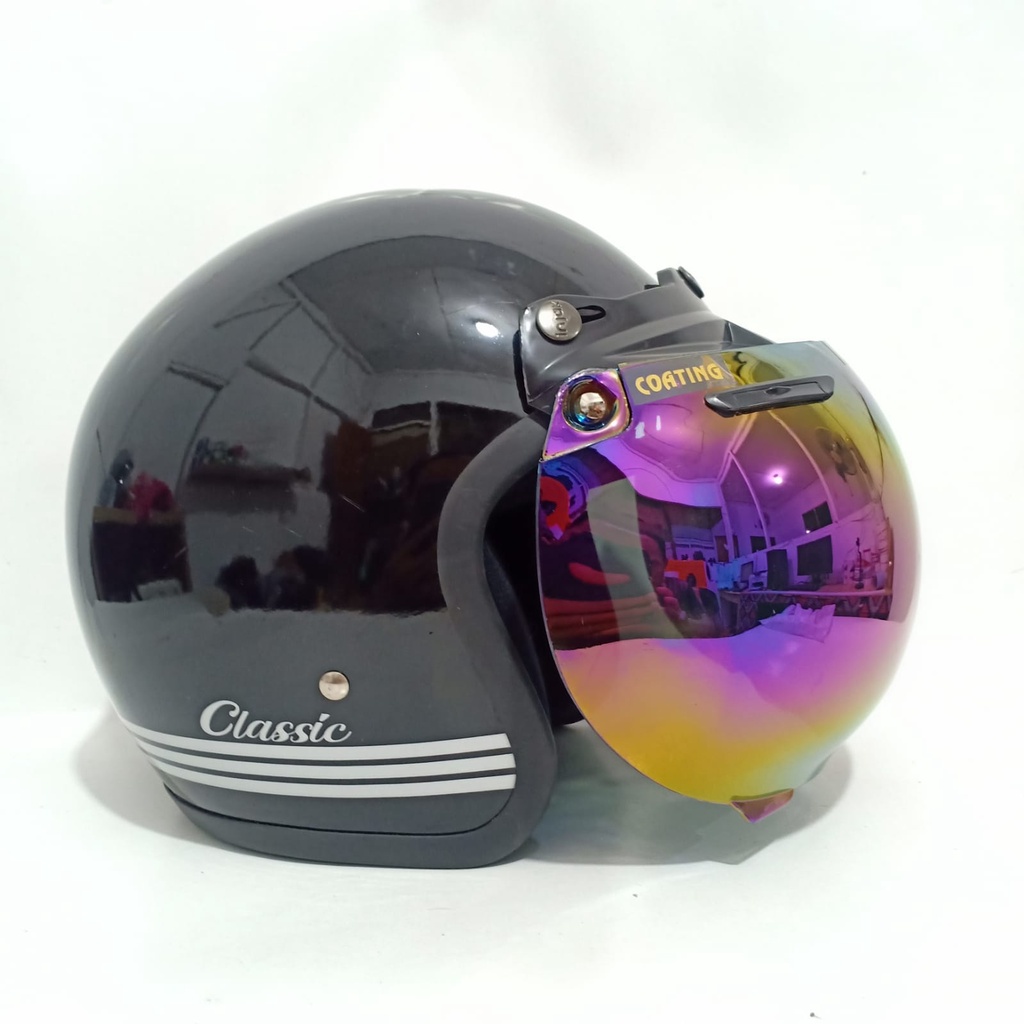 Harga HELM BOGO DEWASA KACA CEMBUNG SNI PRIA WANITA KACA CEMBUNG DATAR FLAT SILVER PELANGI SMOK HITAM GOOGLE