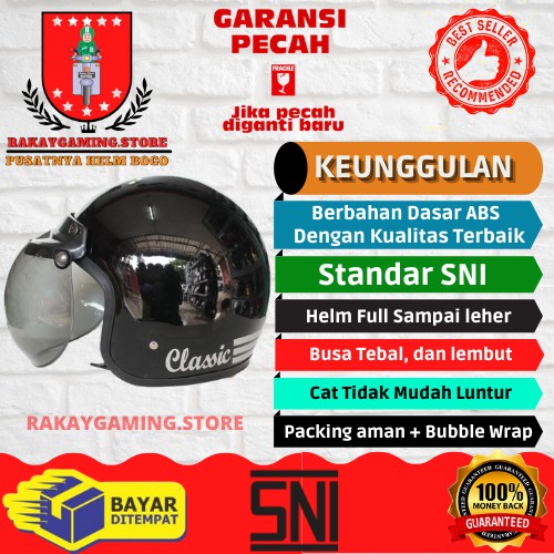 Kelebihan - Kelebihan membeli Helm Bogo Dewasa Wanita Pria Retro Classic Clasic Klasik Motor SNI Motif Polos Full Leher PHB01 di Toko ini