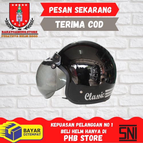 HELM BOGO CLASSIC PREMIUM - HELM BOGO RETRO - HELM BOGO JPN DEWASA KACA DATAR HITAM BENING COD