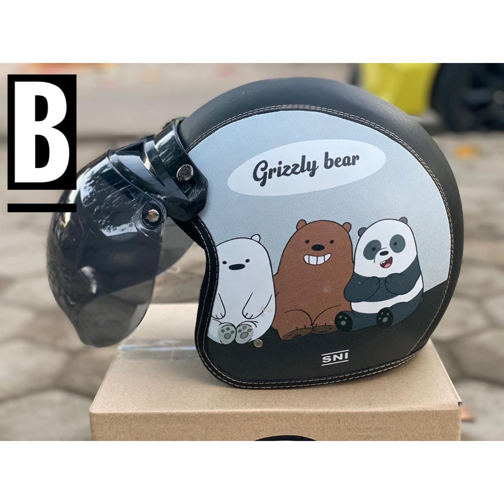 Alasan kenapa harus beli Helm bogo FULL LEHER Motif Kaca Bubble halfface ADINOVA sekarang