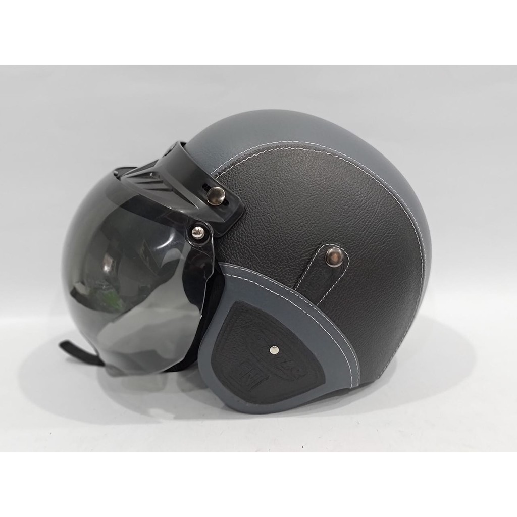 Harga Helm Bogo / Helm Retro Full Kulit GTR Gunmet Black + Visor (kaca helm)