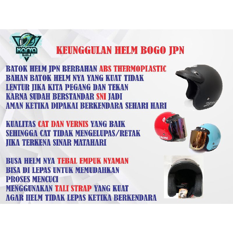 - Produk ini tidak sedang Flash Sale, tidak semua Seller suka Flash Sale, saya rasa ini bukan kekurangan, Jika Anda anggap Harga Rp. 129.630,00 itu murah untuk Helm Bogo Jpn Retro Hijau Army Dop ya ambil saja