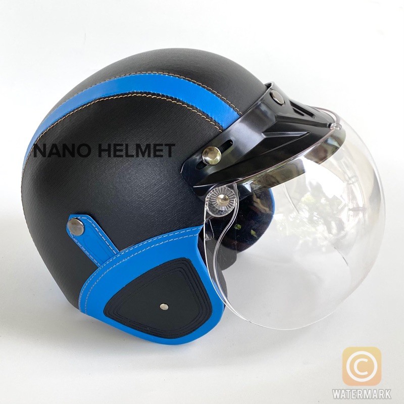 Helm Bogo Retro JPN Black Hitam Glossy/Metalik Satu Set kaca Datar Cembung-Helm Bogo jpn Original Retro Classic