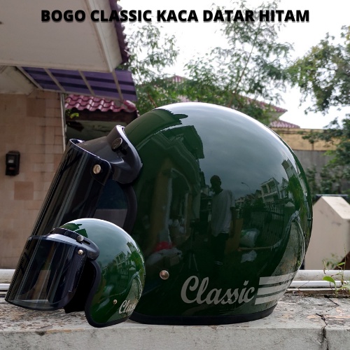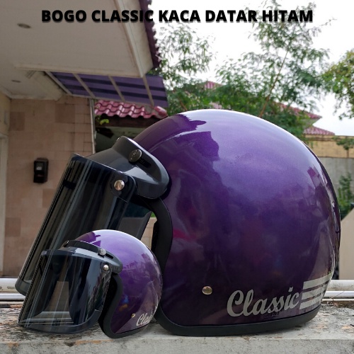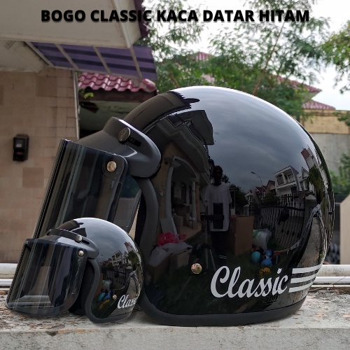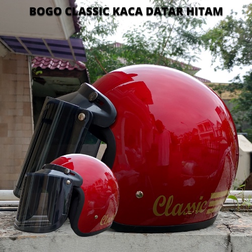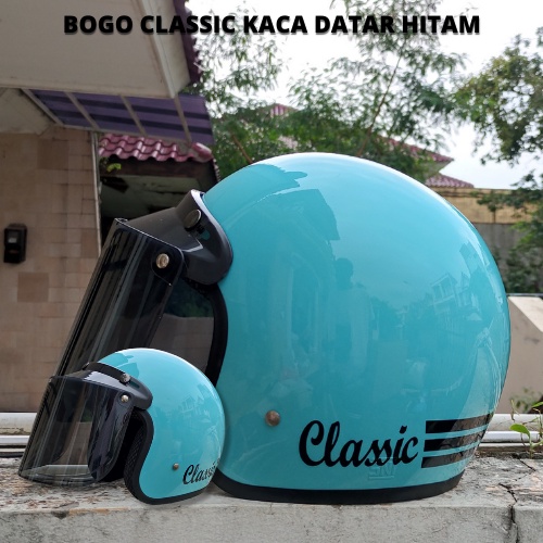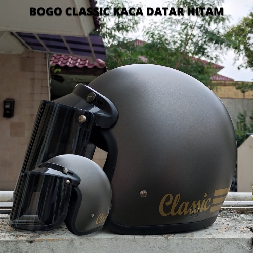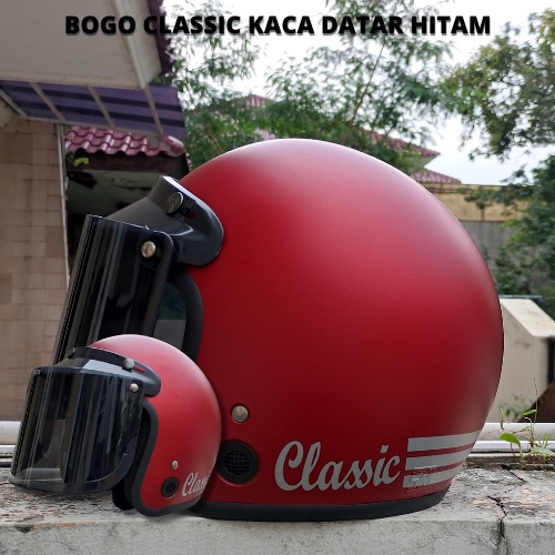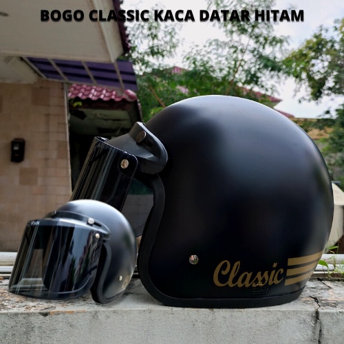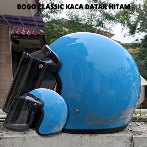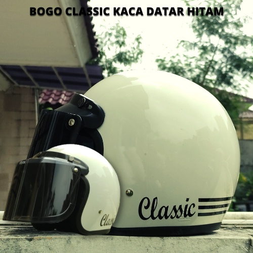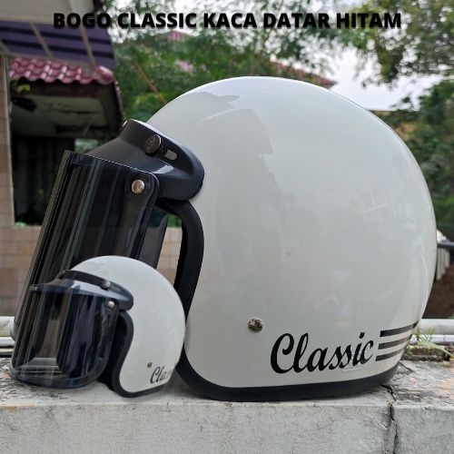 Harga Helm Bogo Retro CLASSIC Wanita Pria Dewasa Keren Cewek Cowok Ukuran M L KACA FLAT DATAR SMOKE Warna Hitam Doff Kuning Putih