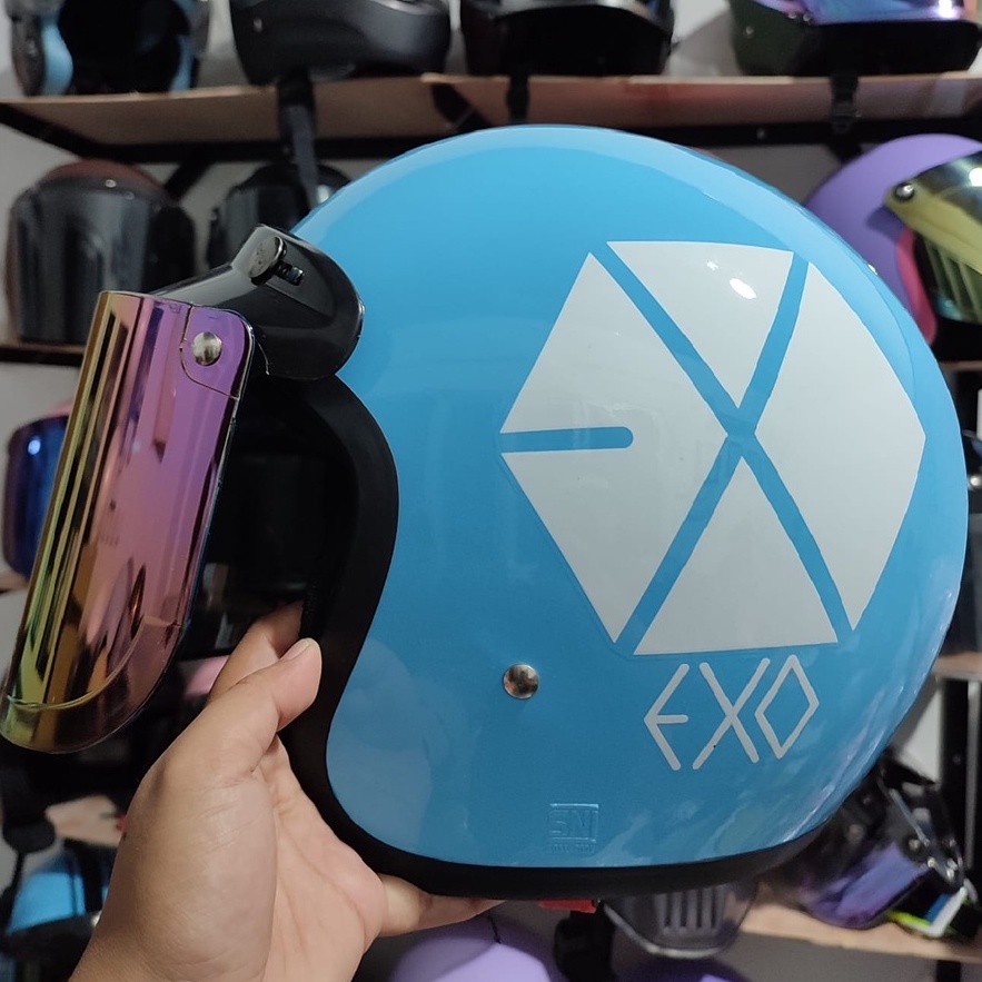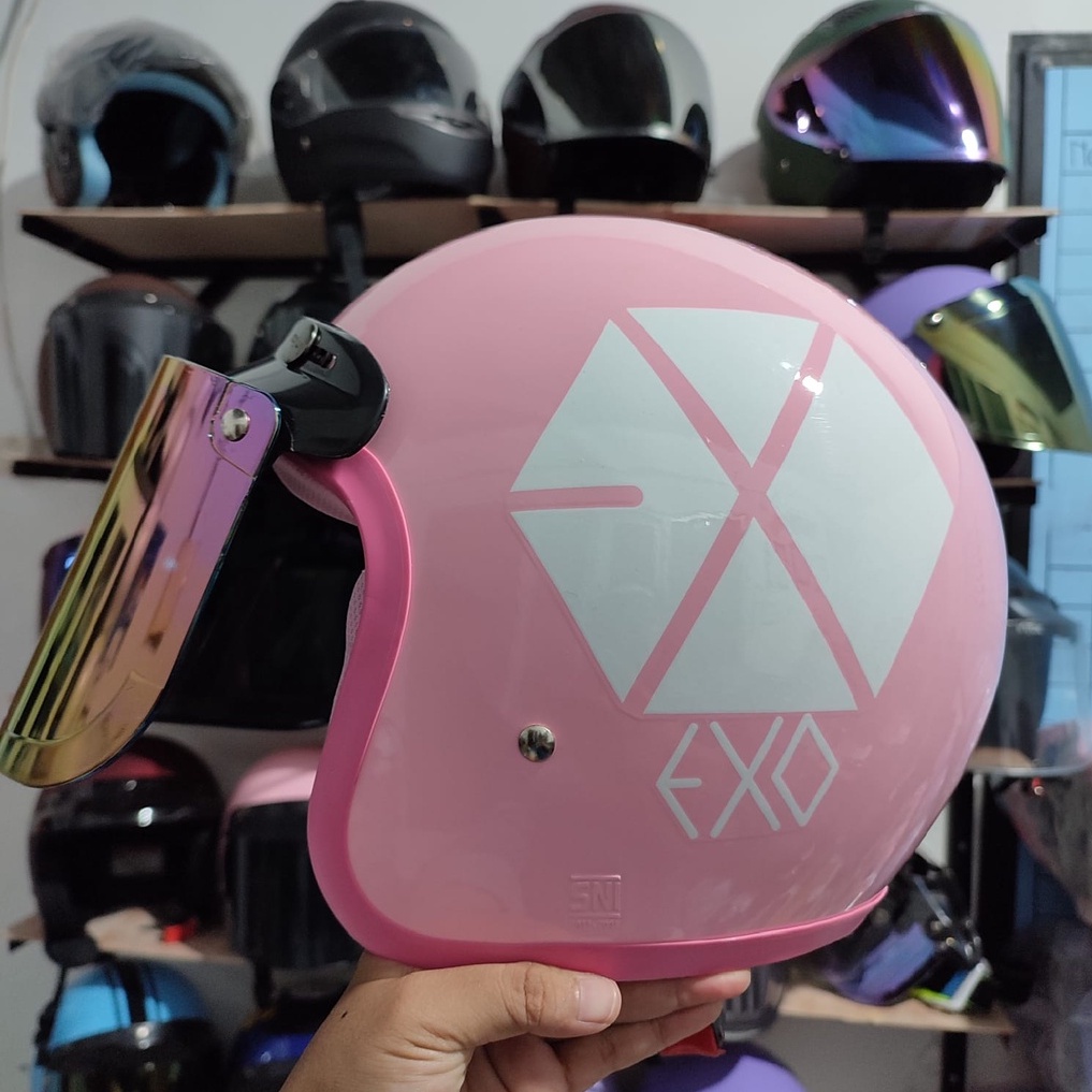 Harga Helm Bogo Retro Dewasa Full Leher Cewek Cowok Motor SNI Helm EXO K-pop