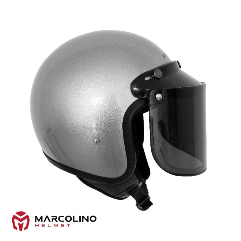 Alasan kenapa harus beli Helm Bogo Retro Marcolino Silver Glossy SNI Flat Visor sekarang