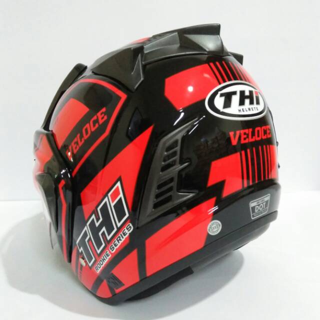 Helm Half Face Thi Veloce Red Black gloss Sni dan Original