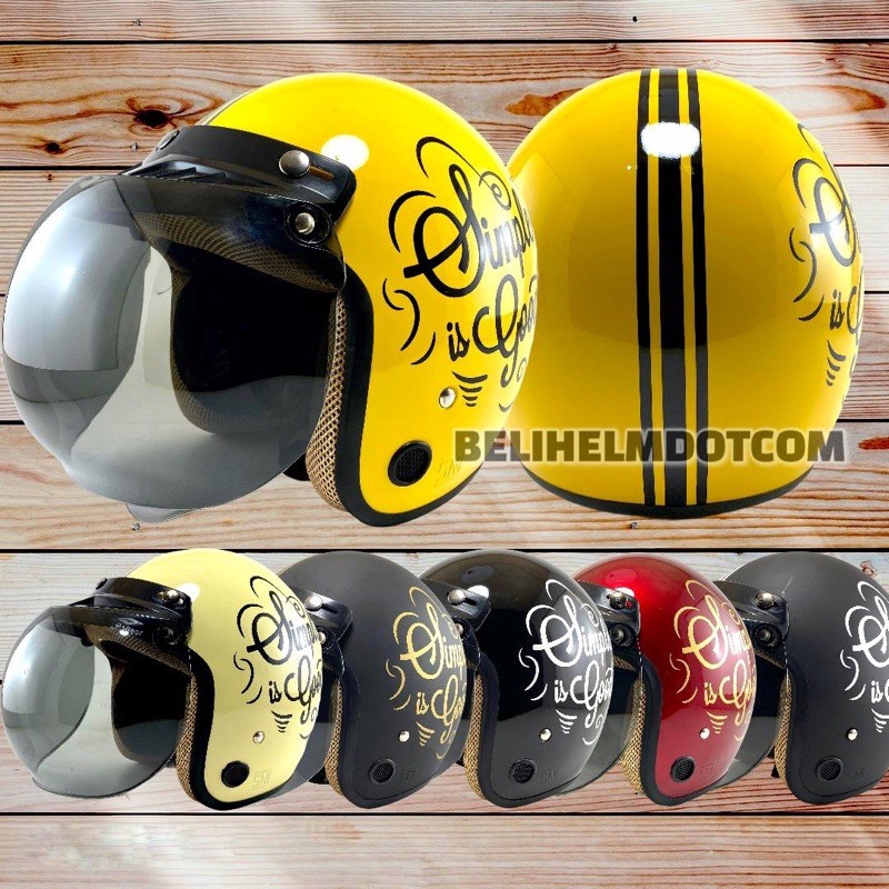Helm Bogo Dewasa Garis Polos Retro Motor SNI Kaca Cembung Datar SNI
