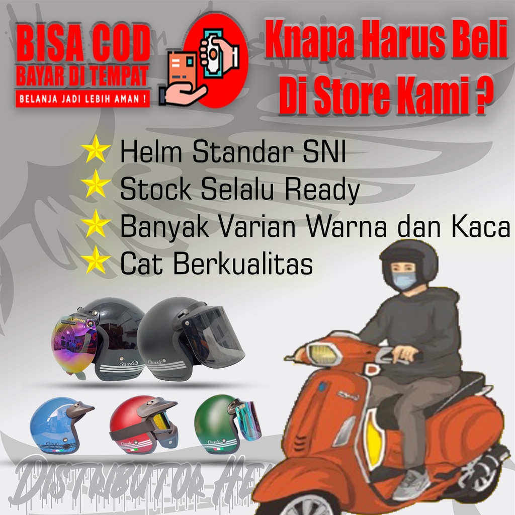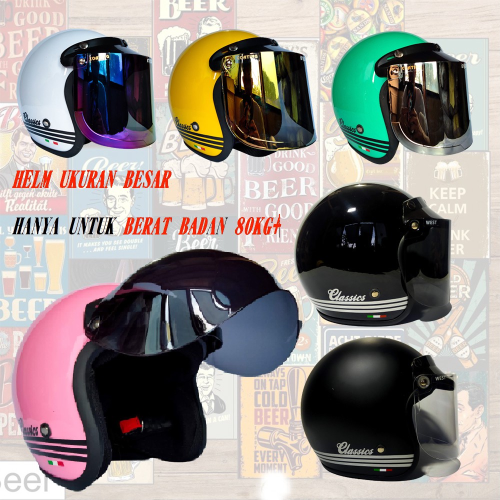 HELM BOGO CLASSIC KACA DATAR HITAM BENING UKURAN BESAR (XL) HANYA UNTUK UKURAN KEPALA BESAR DAN BADAN BESAR COD