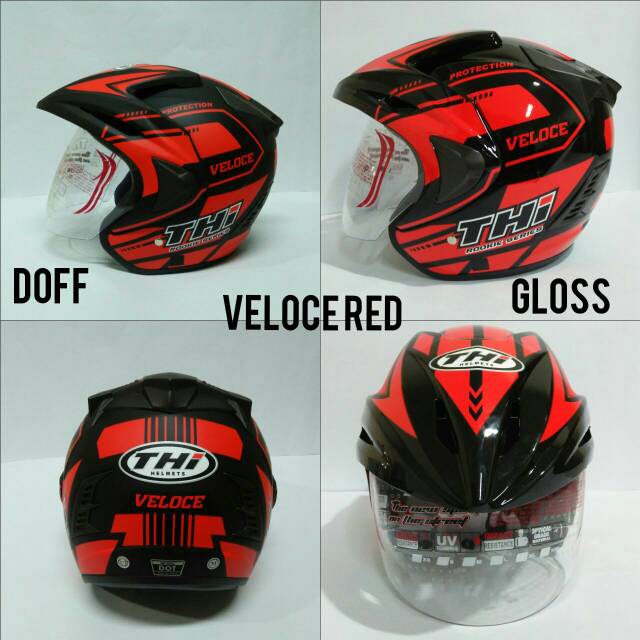 Harga Helm Half Face Thi Veloce Red Black gloss Sni dan Original