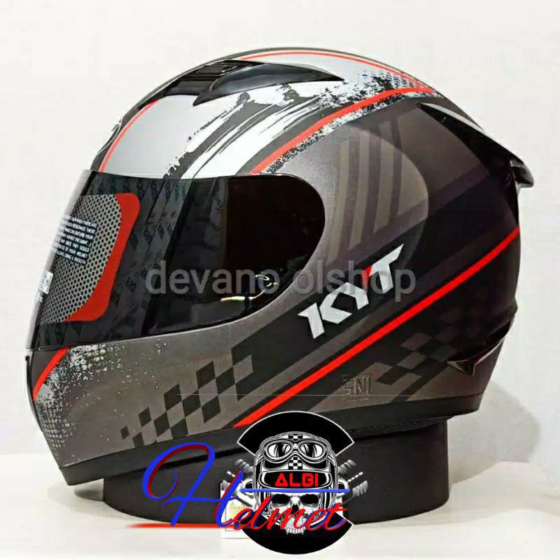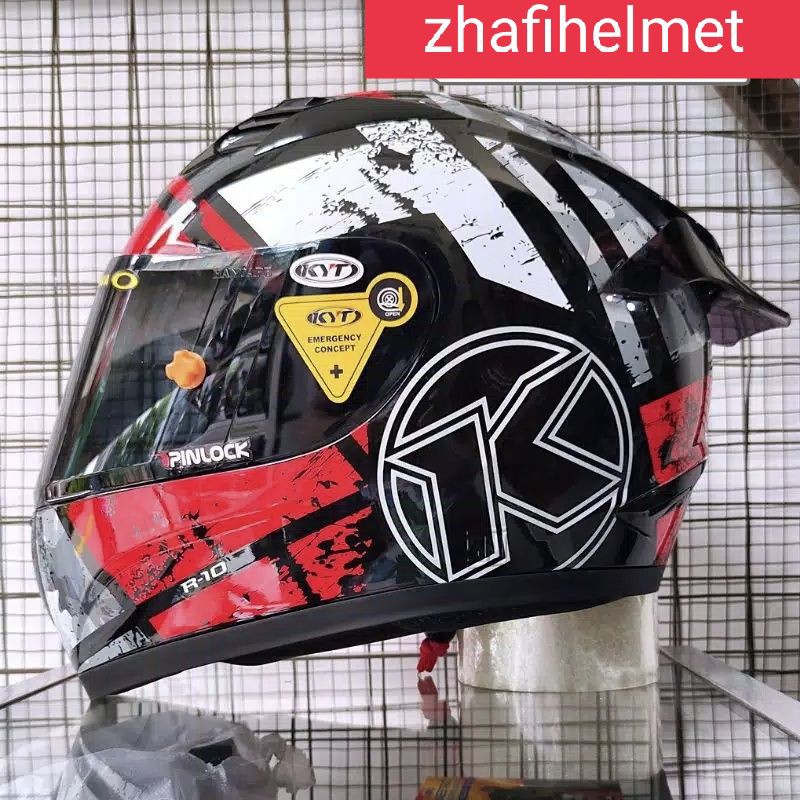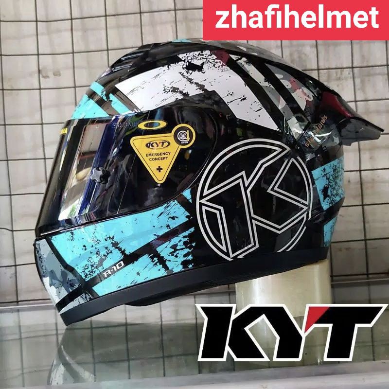 Harga helm kyt r10 motif paket ganteng kac flat iridium,stiker full kaca,dan spoiler (BISACOD)