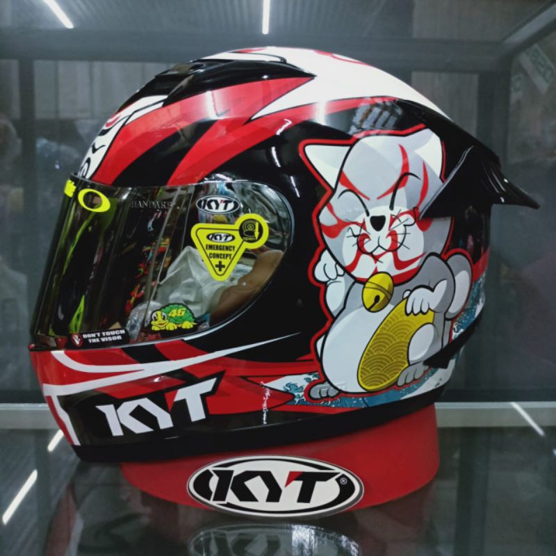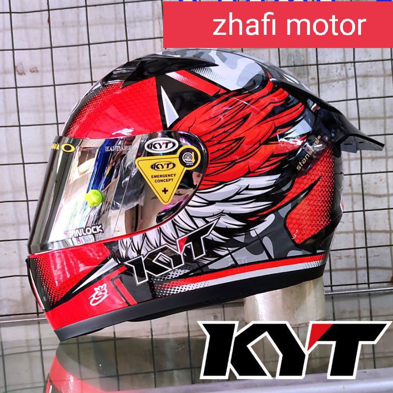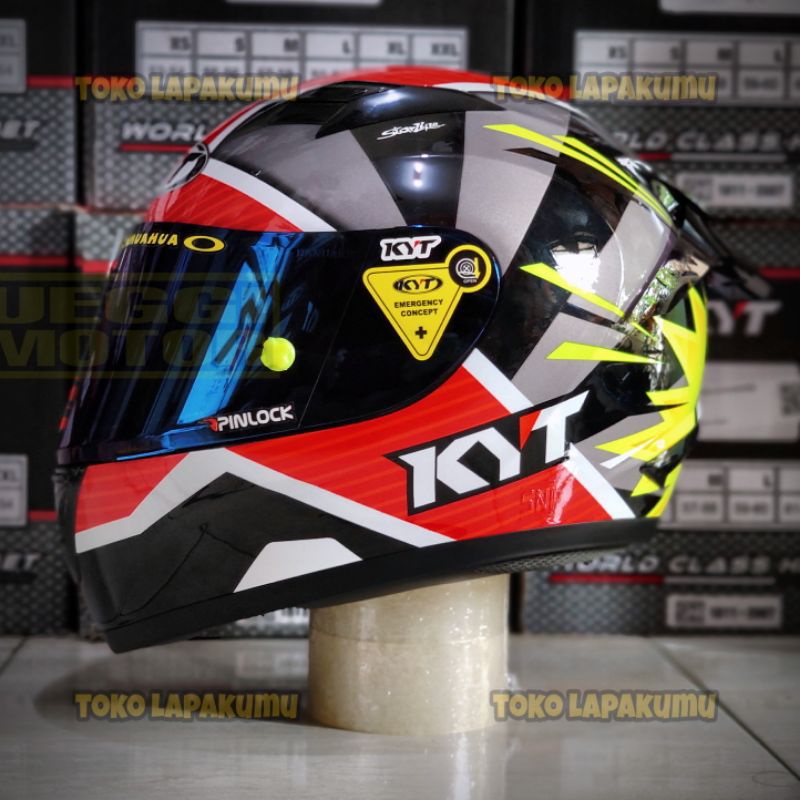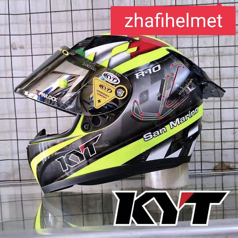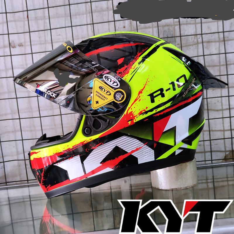 Kelebihan - Kelebihan membeli helm kyt r10 motif paket ganteng kac flat iridium,stiker full kaca,dan spoiler (BISACOD) di Toko ini