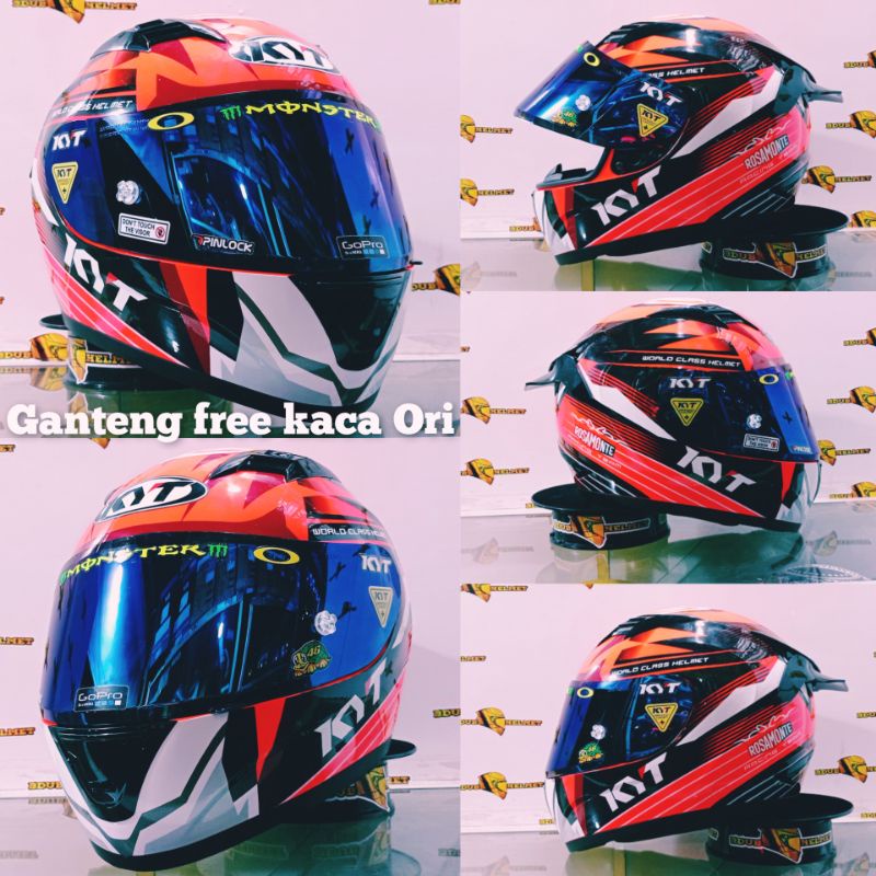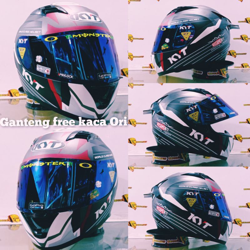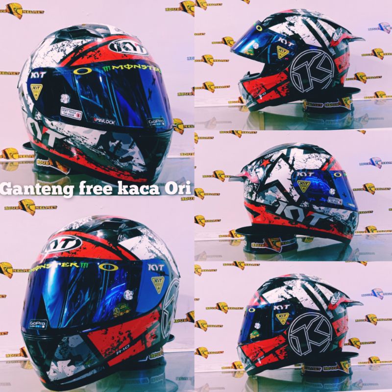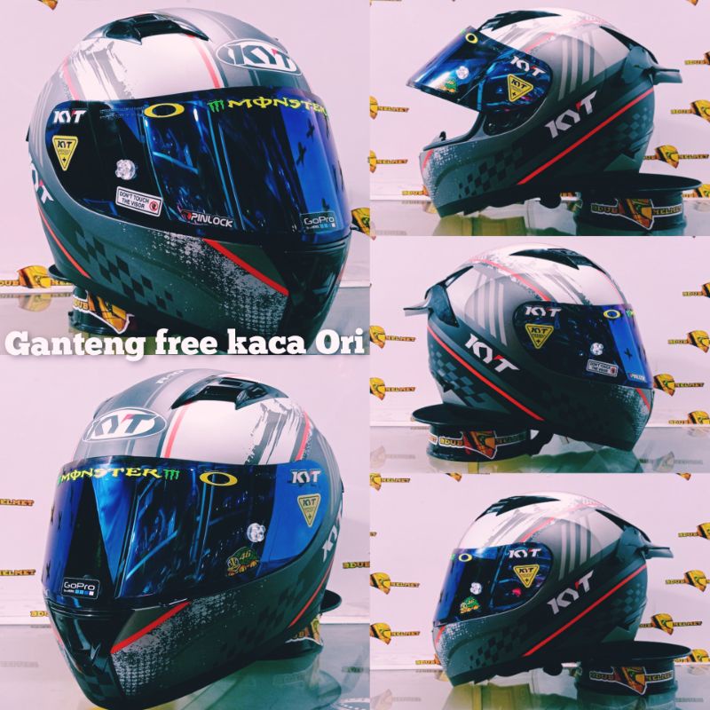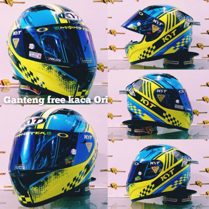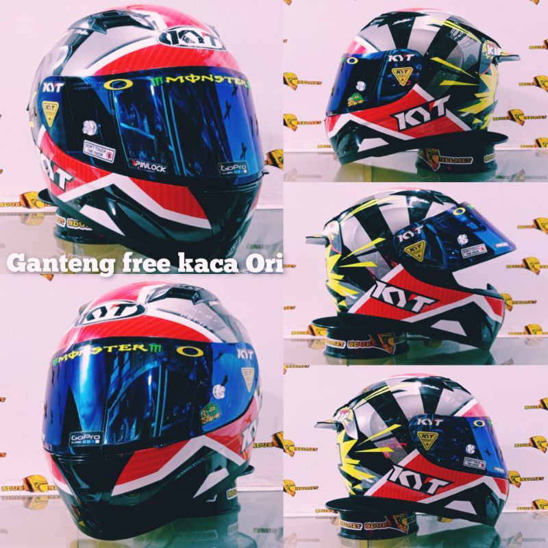 Helm full face KYT RC Seven Paket Ganteng Motif Visor Iridium Silver Stiker Set Spoiler RC7