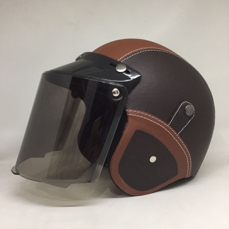HELM RETRO BOGO MURAH SNI FULL KULIT PLUS KACA DATAR