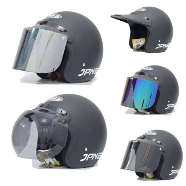 HELM JPN Hitam Doff HELMET MOTOR BOGO RETRO POLOS PRIA WANITA PAKET KACA DATAR FLAT VISOR